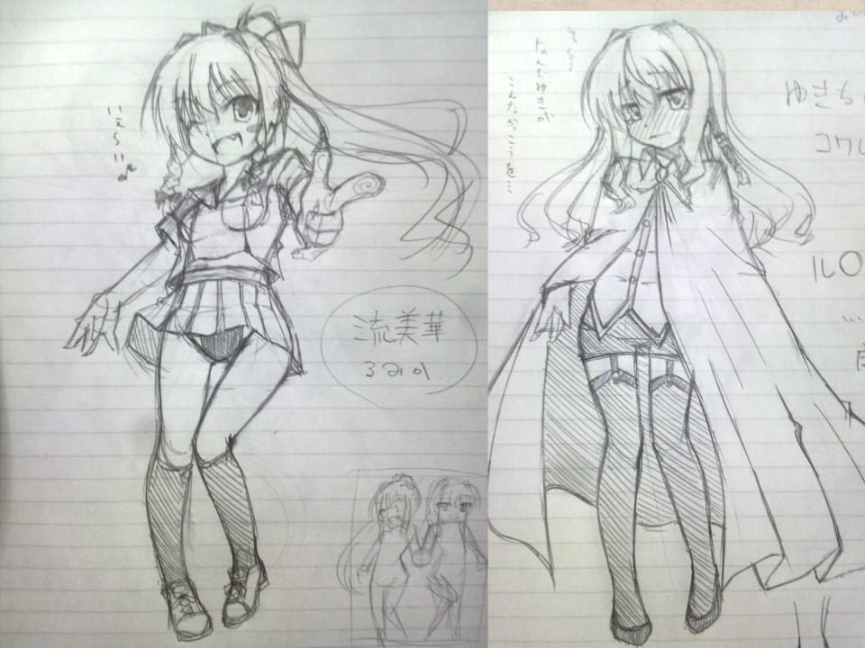 今回は、キャラデザしてたころの落書きでもちょっと載せておきますねー。